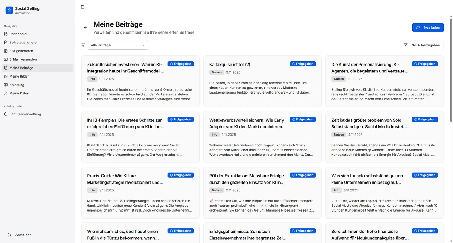 Für Selbstständige, Coaches, Berater:innen und kleine Unternehmen, die sichtbar werden möchten, aber keine Zeit haben, täglich Content zu erstellen udn für die regelmäßige und kontinuierliche Akquise wichtig ist.