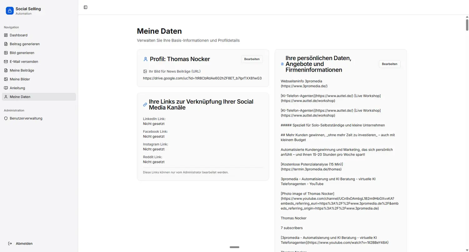 Sie können Ihr Angebot, Ihre Webseite, Ihre Marketingaussagen in der App hinterlegen und wir werden daraufhin alle Beiträge, E-Mails und Texte daraufhin anpassen.